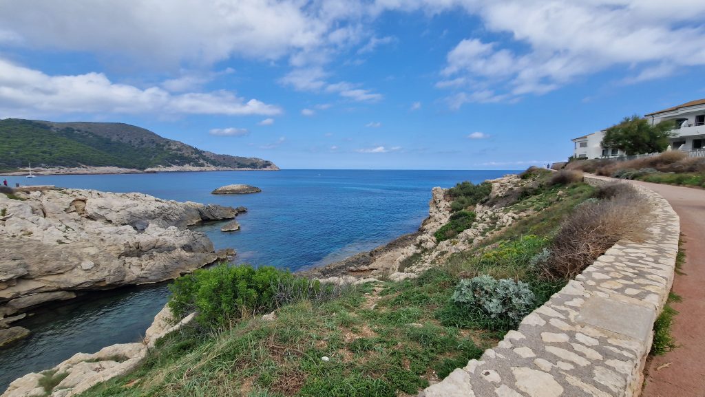 Das heißt aber nicht, dass man in Cala Rajada nicht einen netten Nachmittag verbringen kann. Denn vom Hafen aus führt eine ruhige, chillige Promenade am Ufer entlang mit herrlichen Ausblicken auf das Mittelmehr. „Passeig ses Ámfores“ heißt der autofreie Weg, kleine Highlights sind ein alter Bunker im Meer und eine riesige Metallskulptur. Von Bettenburgen und Partytourismus bekommt man hier überhaupt nichts mit. Der Weg endet an der kleinen Bucht Cala Gat, wo man auch eine Strandbar findet.