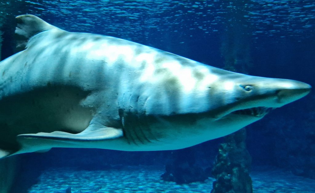 Die ruhigen Sandtigerhaie leben auch im Palma Aquarium, Regentage nehmen sie gelassen